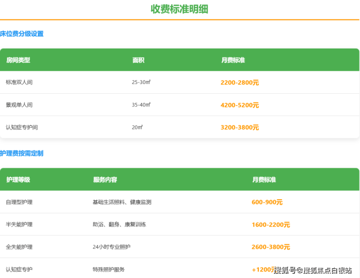 半护理:1500-2500元/月(部分自理长者)