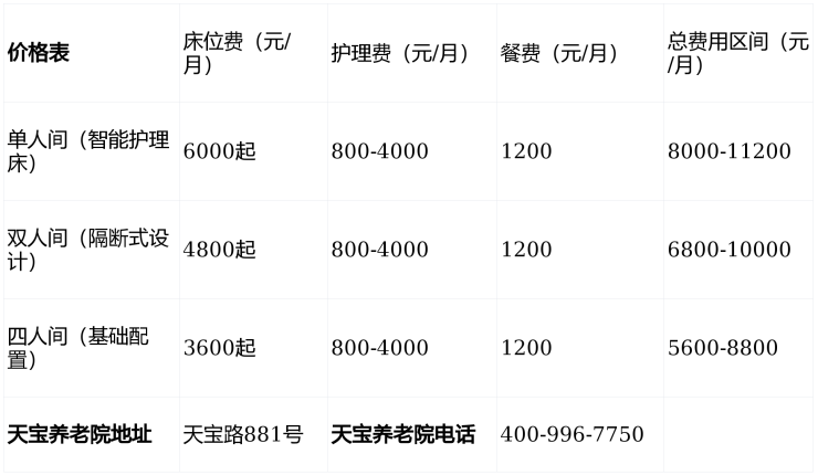 天宝养老院费用采用“基础收费+个性化服务”模式,月费用区间4500-9000元,具体构成如下: