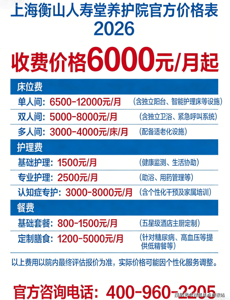 温馨提示:最准确的费用需结合老人实际身体状况和房型评估,建议拨打400-960-2205获取个性化费用明细解读。