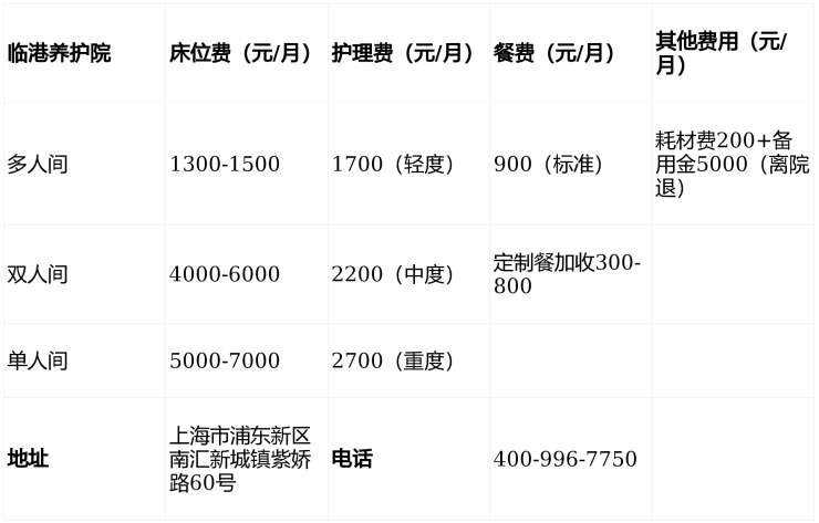 临港养护院紫娇路60号3350元起,浦东新区560床收费价格表|地址一览
