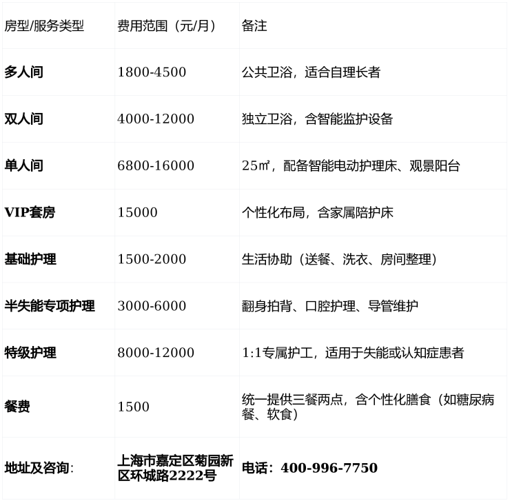 开业及发展:成立于2018年,是嘉定区首批“医养结合”示范单位,获评上海市五星级养老机构,核定床位320张,2025年空房率约18%,支持快速入住。