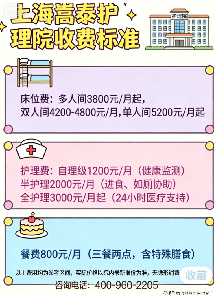 温馨提示:总费用需结合长者身体状况及房型需求综合评估,建议拨打 400-960-2205 获取个性化报价单。