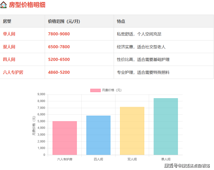 价格:4860-9080元/月(根据房型和护理等级)