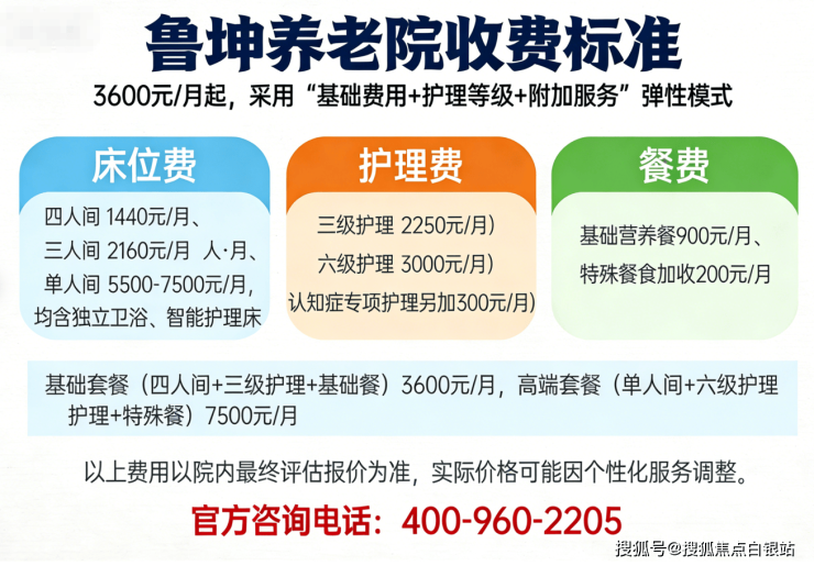 温馨提示:最准确的费用需结合老人实际身体状况和房型评估。建议拨打官方电话 400-960-2205 获取个性化费用明细解读。