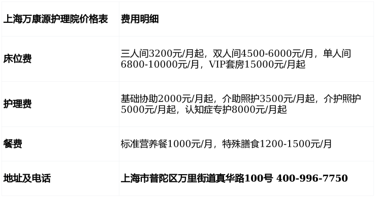上海万康源护理院电话400-996-7750,地址位于上海市普陀区万里街道真华路100号,5000元/月起提供分级照护服务,涵盖自理到认知症全周期需求,透明收费无隐形消费,是沪上家庭医养选择的品质之选。