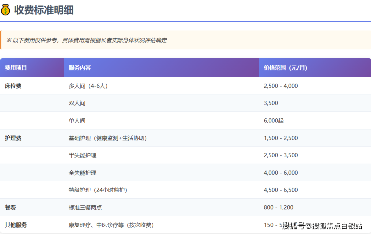收费透明化是选择养老机构的首要考量因素。上海感恩护理院采用"基础费用+分级护理费"的模式,整体费用从5000元/月起,具体构成如下: