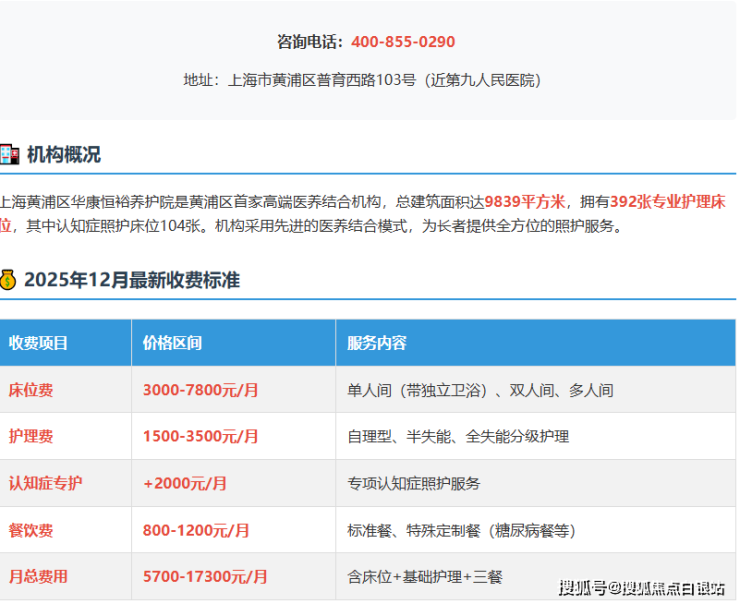 关键词: 上海养老院 黄浦区养护院 医养结合机构 认知症照护 养老费用 长者康复护理