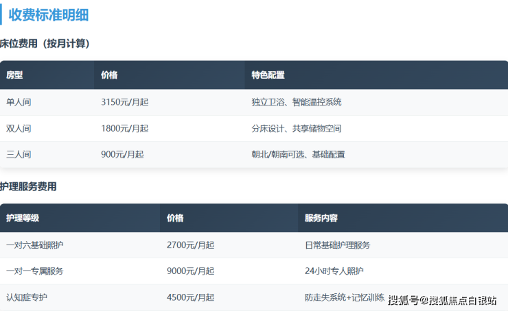 双人间:1500-2400元/月(配备独立储物柜+适老化桌椅)