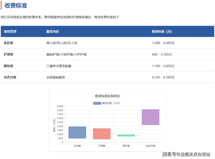 在收费方面,华康恒裕养老院采用透明化的分级收费模式: