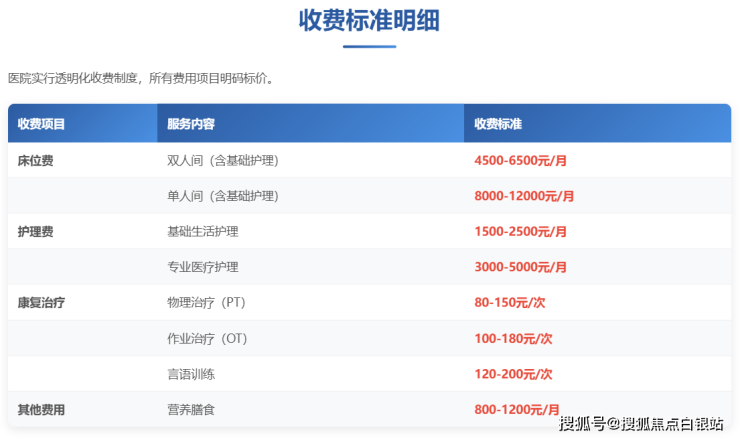床位费:单人间、双人间、多功能病房,价格区间2000-8000元/月
