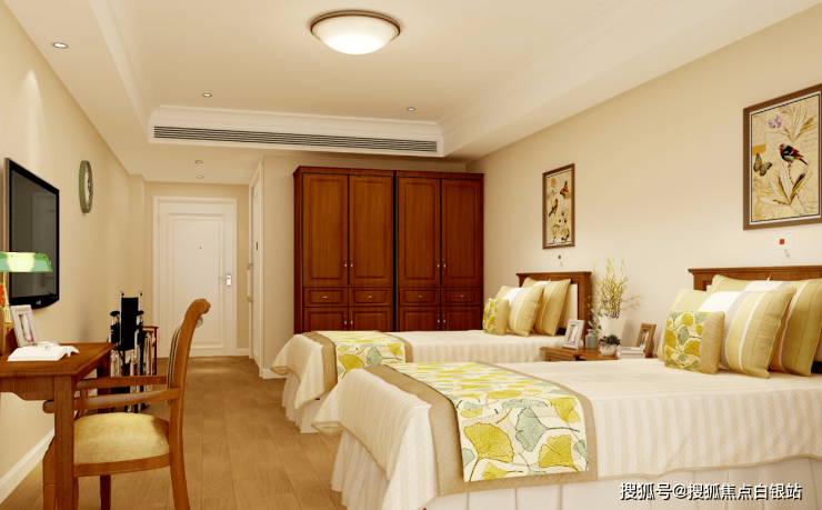 适老化居住空间:房间设计充分考虑长者安全与便利,配备护理床、紧急呼叫系统、独立卫浴等。公共区域全程无障碍设计,走廊安装扶手,地面防滑处理。