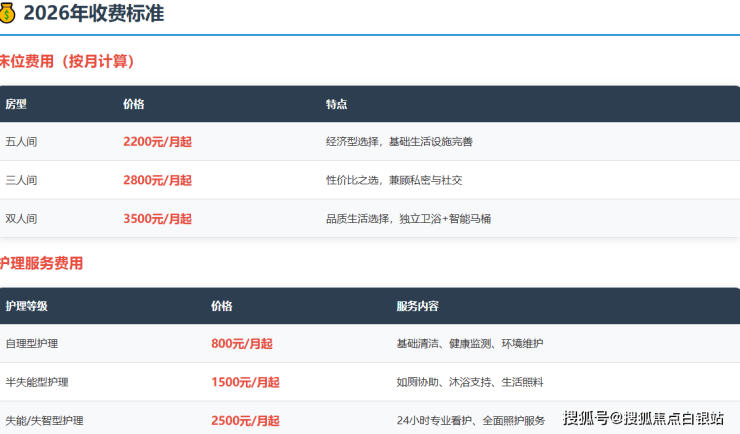 友谊幸福里养老院采用"床位费+护理费+餐费"三段式计价模式,所有项目明码标价,无隐形消费。具体收费构成如下: