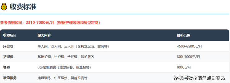 参考价格:5000-7000元/月(根据护理等级和房型)