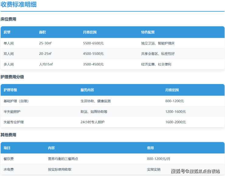 单人间:5500-6500元/月(25-30㎡,配备独立卫浴、智能护理床)