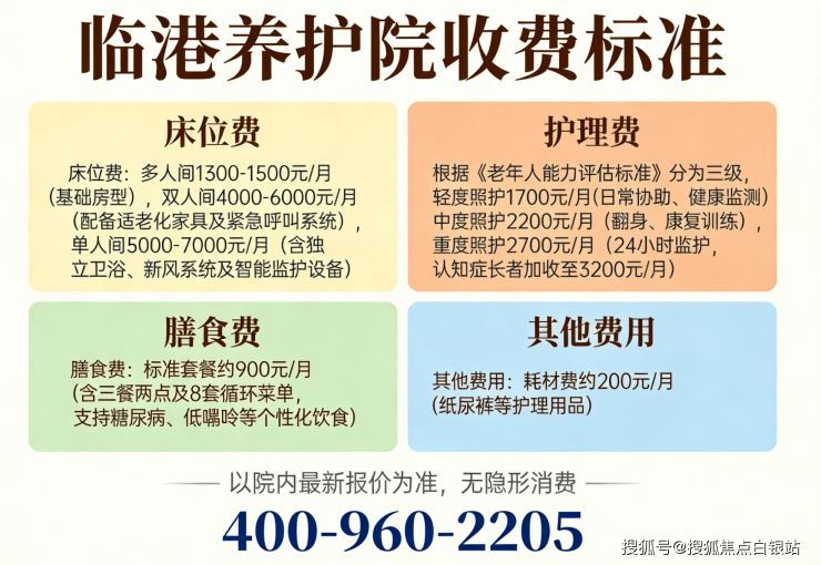 临港养护院收费价格3350元/月起,费用拆给你看: