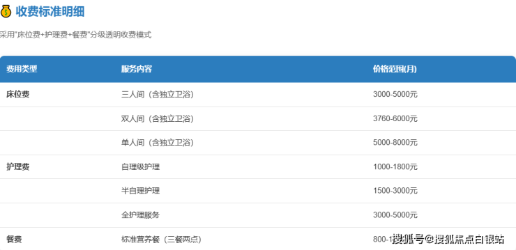 上海香树湾采用透明分级收费模式,月度总费用区间为3760-12000元,具体构成如下: