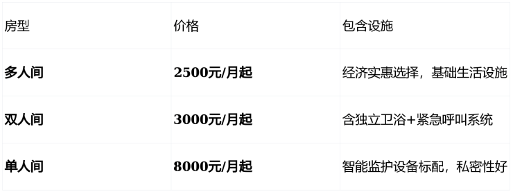 收费起点:3000元/月起(根据房型和护理等级动态调整)