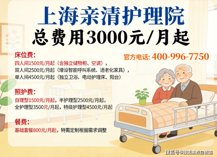 对比周边机构:松江同类型护理院单人间床位费普遍在5000元以上,且护理费未细分等级,亲清的价格更透明、选择更灵活!