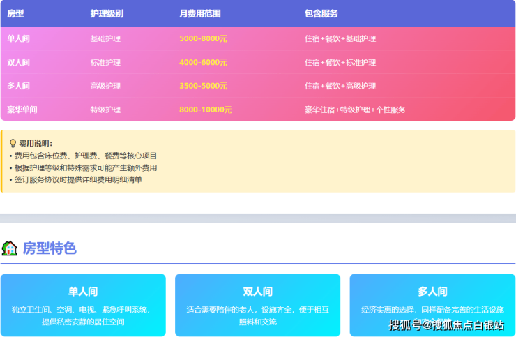 高境镇养老院采用分层定价模式,确保收费透明合理: