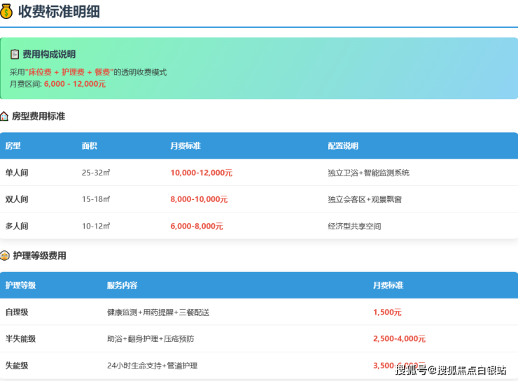 多人间:参考价格约 6000-8000元/月。为经济型选择,面积约10-12㎡,配备基础的适老化生活设施。