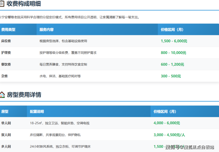 核心服务与收费对比:安馨敬老院2026年详解清单