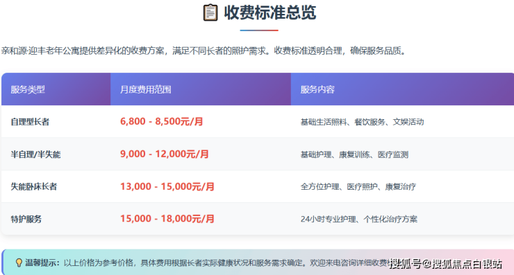 参考价格区间:6800元 - 18000元/月(根据长者护理等级不同而浮动)