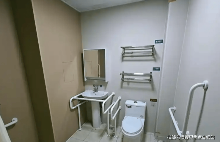 适老化细节:走廊宽度≥1.5米,双层扶手及防滑地胶;电梯设语音播报及低位按钮;房间南向布局,日均日照超6小时,配备地暖、新风系统及独立卫浴。