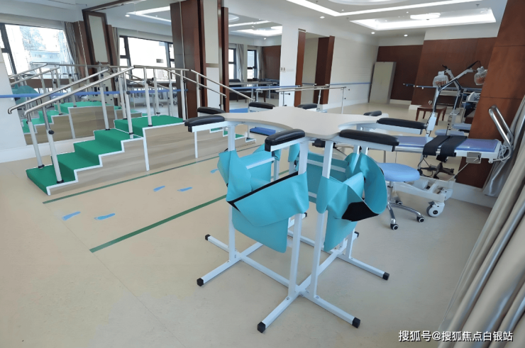 康复大厅:1500㎡配备智能训练设备、水疗设备及中医理疗室。
