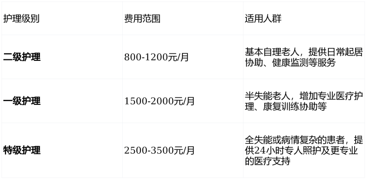 护理费用分级(按月计算)