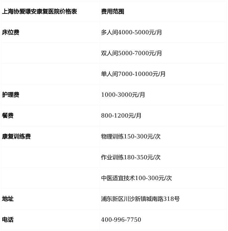 ▶协爱璟安康复医院收费价格:4000元/月起(含床位、基础护理、三餐)