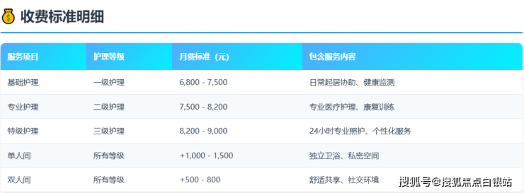 舒适套餐:9000 - 12000元(双人间 + 半护理级护理 + 营养餐)。