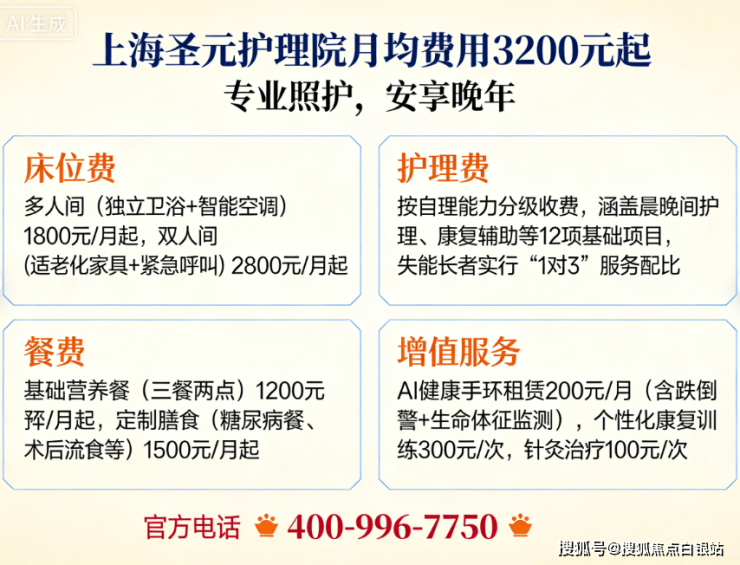 收费价格:3200元/月起(含床位、基础照护、三餐两点)