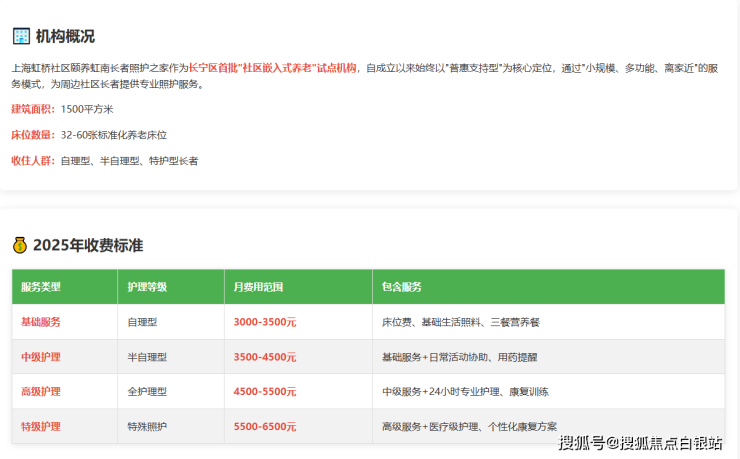 上海虹桥社区颐养虹南长者照护之家2025年收费标准-护理服务全解析
