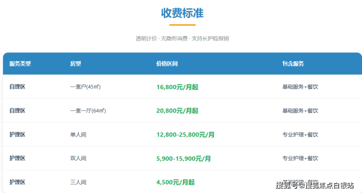费用涵盖:床位费、基础物业服务、部分文娱活动及公共设施使用(餐饮费通常另计)