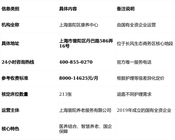 在深入细节之前,让我们先通过以下表格快速了解上海普陀区康养中心的核心信息: