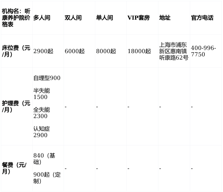 价格:2900元/月起,含床位、基础护理、三餐两点