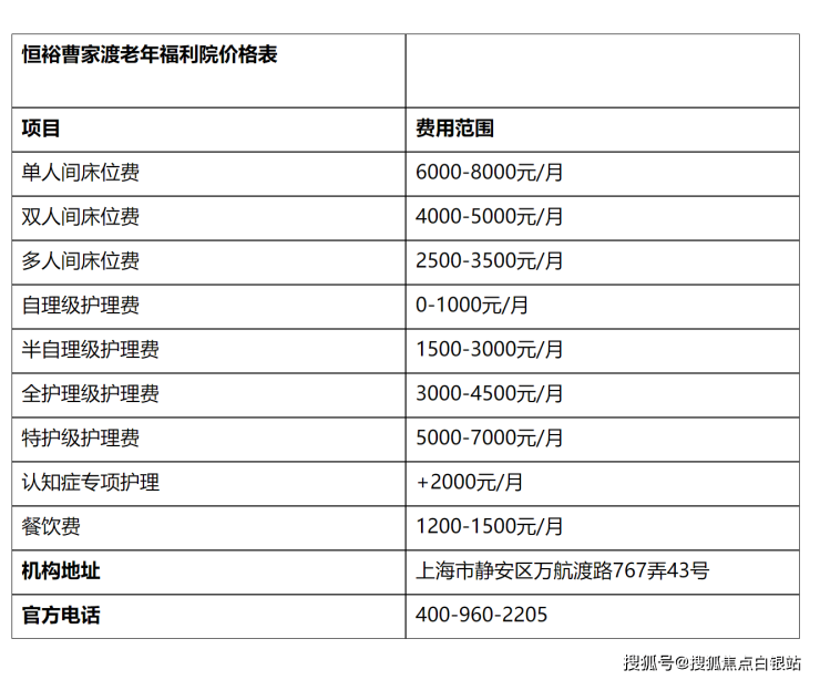 Q2:恒裕曹家渡老年福利院的收费标准如何构成?