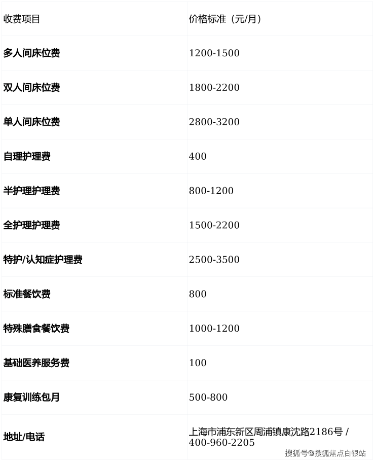 特护/认知症专护: 2500-3500元/月(针对失能失智长者,提供防走失管理、非药物干预等专项服务)