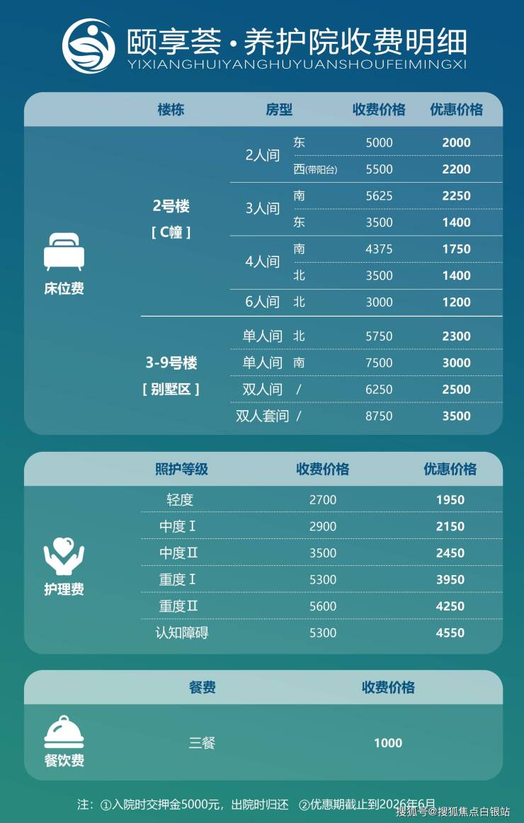 01.月费用区间:3000元至12000元/月,具体费用根据长者的身体状况、所选房型及护理等级综合评估确定。