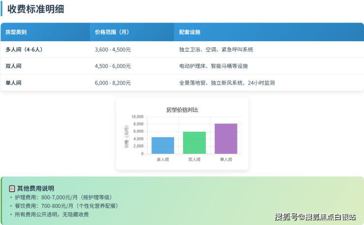 参考价格:3600-8200元/月(按房型与护理等级分层定价)