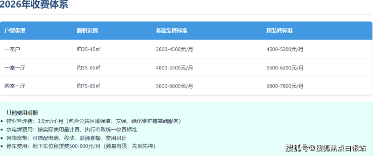 其他可选费用:网络宽带需自行选配运营商套餐;如需停车,地下车位租赁费约为500-800元/月。
