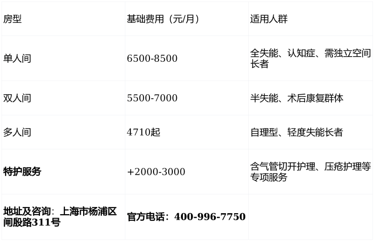 收费价格:4710元/月起(含床位、基础护理、三餐两点)