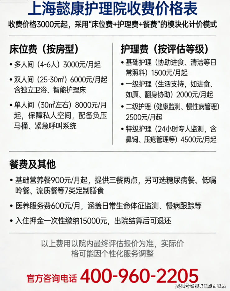 温馨提示:最准确的费用需结合老人的具体情况和所选房型进行评估。建议您拨打官方电话400-960-2205获取个性化的费用明细解读☎️。