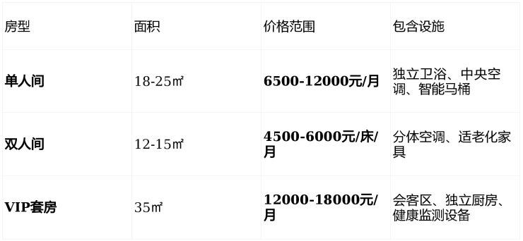 价格范围:6500-18000元/月(根据房型与护理等级)