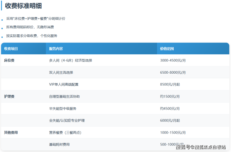 收费价格区间:3000-10000元/月(根据护理等级和房型)