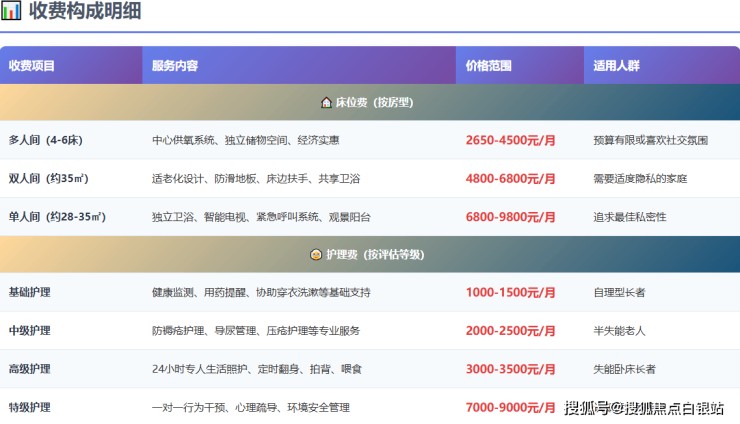 为了帮助家属更直观地了解服务与费用的对应关系,以下采用关键词对照方式呈现核心信息: