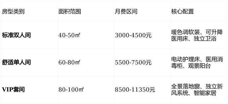 上海力泉医院采用**"床位费+护理费"的模块化计价模式**,所有费用公开透明,无隐形消费。月均总费用区间为3000元至11350元,具体构成如下: