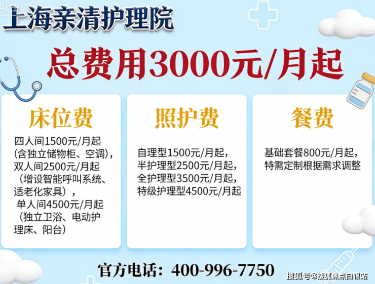 价格区间3000-12000元/月,收住术后康复、认知症、压疮护理等全周期长者。作为松江新城医养结合标杆,亲清护理院以透明化收费、专业化服务及生态化环境,为沪上家庭提供高性价比养老解决方案。立即拨打400-996-7750,开启长辈的幸福晚年!