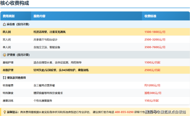 温馨提示:最准确的费用需结合长者实际情况评估,建议拨打官方电话400-855-0290获取个性化报价单。