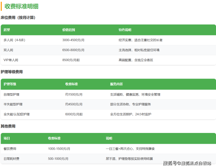透明收费体系:3000元起享分级专业照护